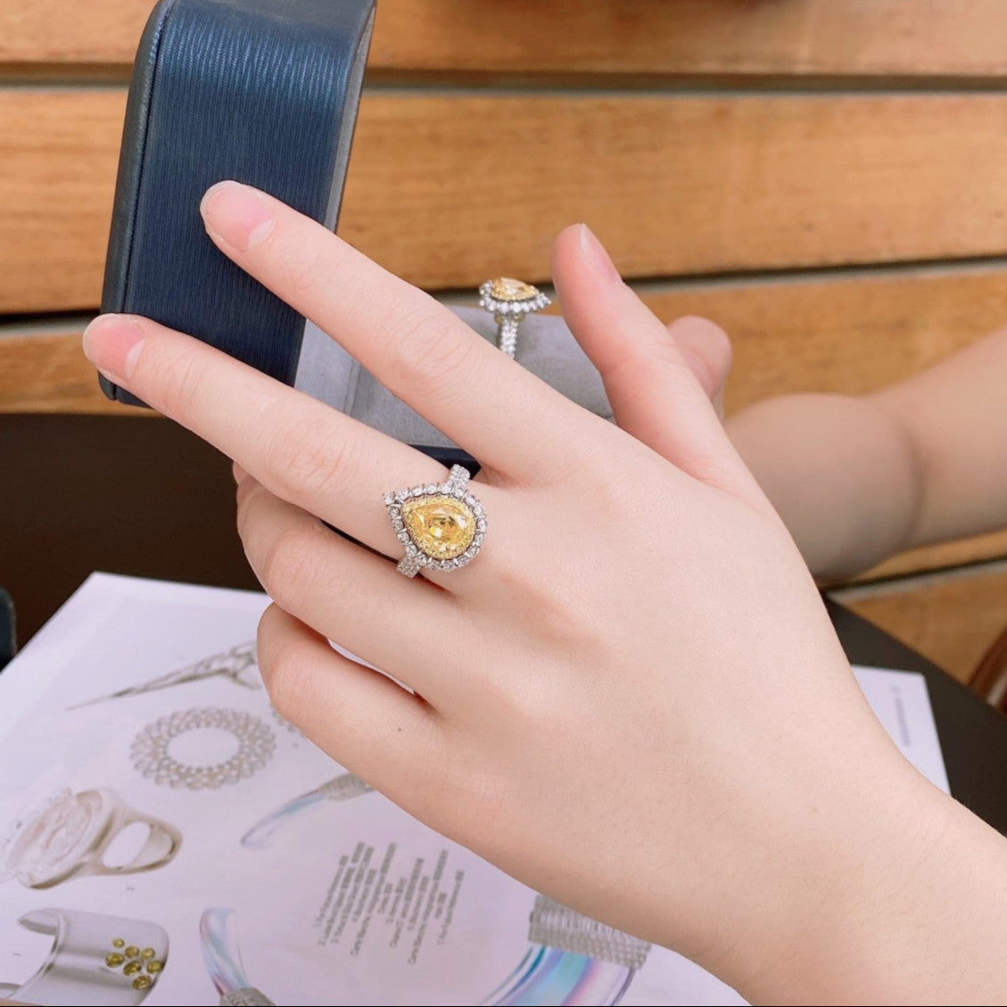 14K Yellow Diamond Water Drop Double Row Straight Arm Ring