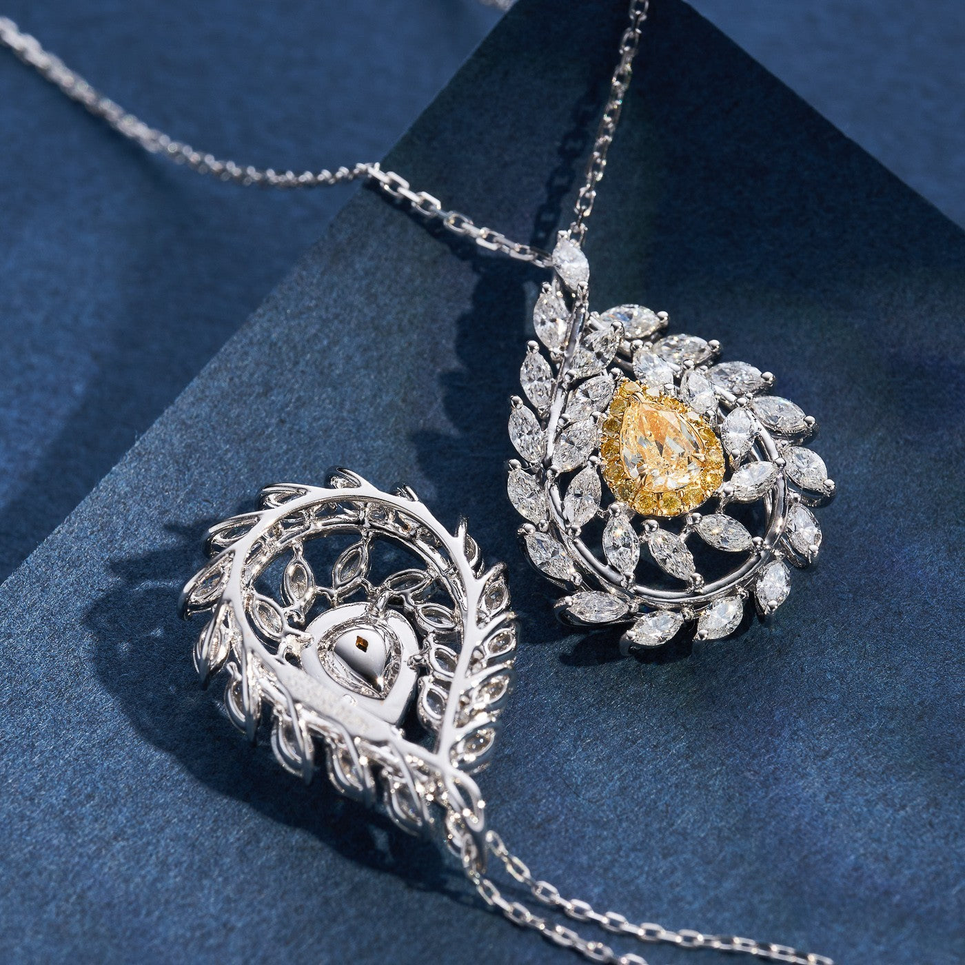 14K Yellow Diamond Water Drop Olive Branch Pendant
