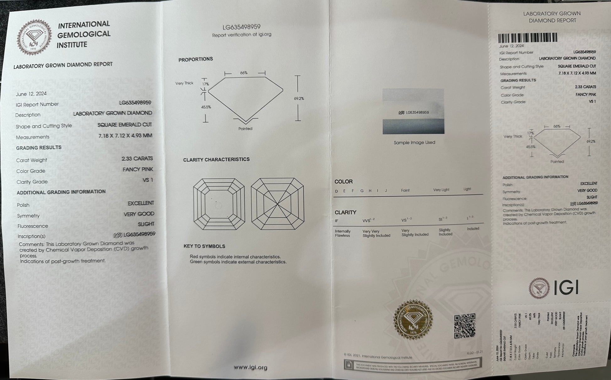 CVD Lab Grown Pink Color Diamonds ASSCHER Cut 0.5ct~5.0ct VVS/VS With IGI Certificate