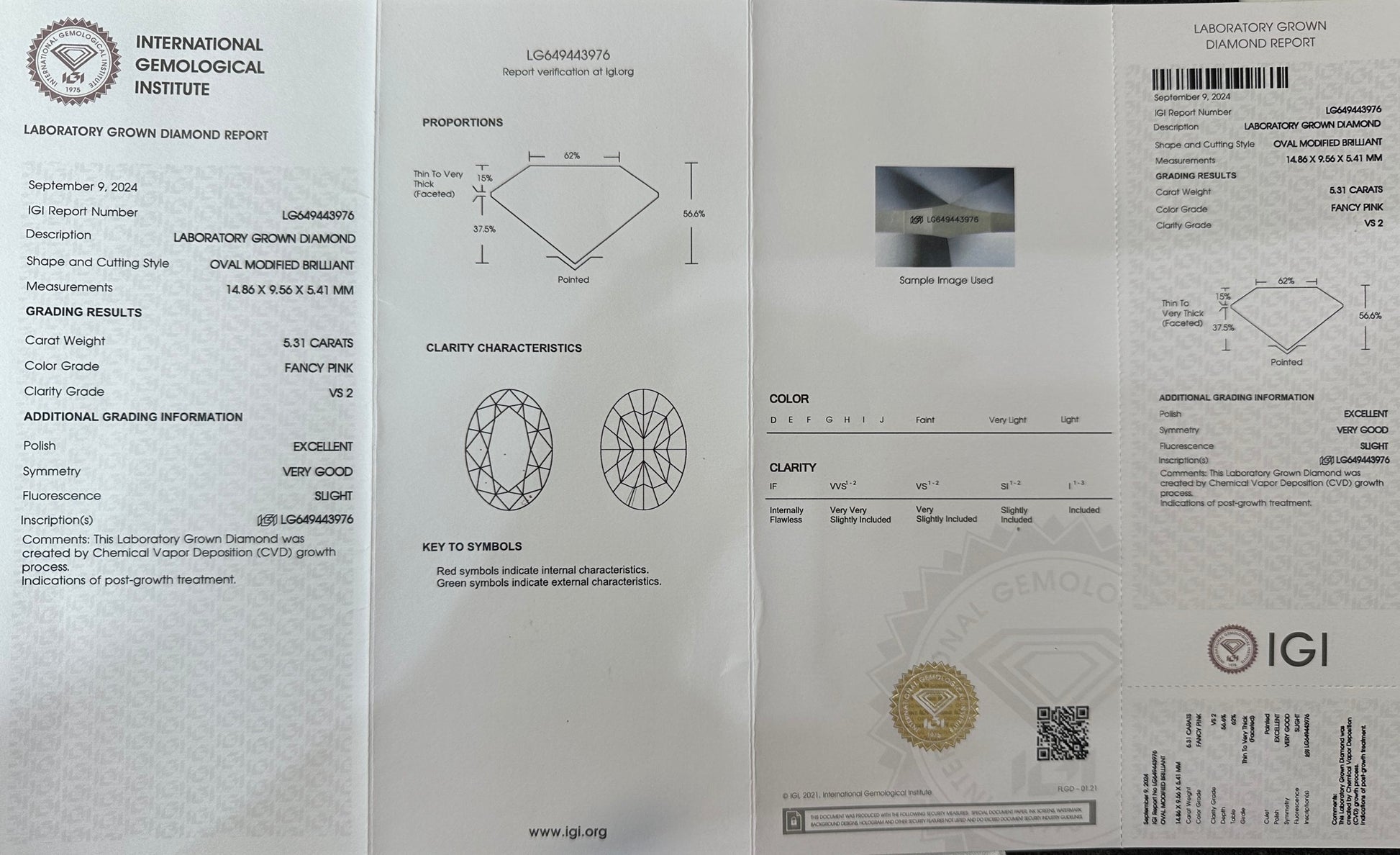 CVD Lab Grown Pink Color Diamonds Oval Cut 0.5CT~5.0CT VVS/VS With IGI Certificate