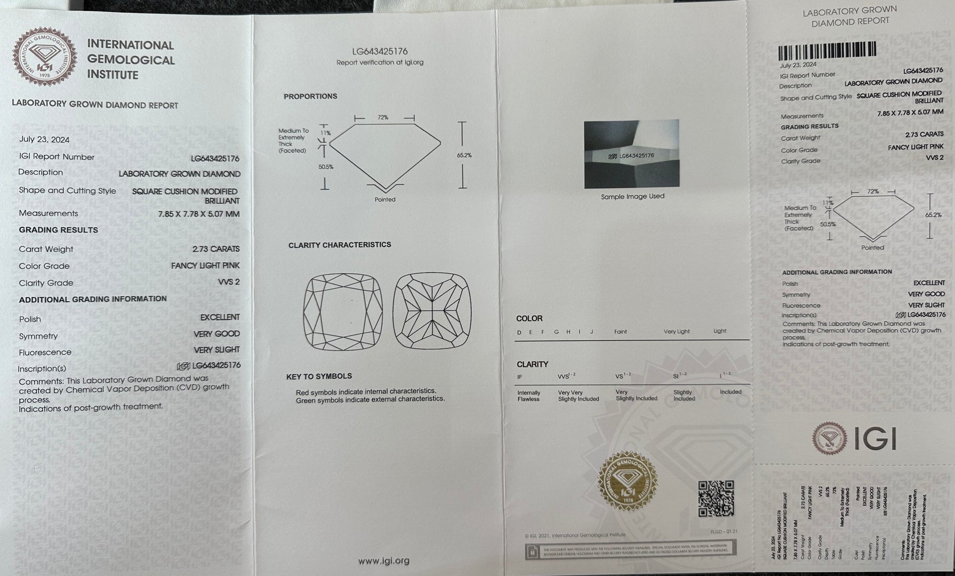 CVD Lab Grown Pink Color Diamonds Cushion Shape 0.5ct~5.0ct VVS/VS With IGI Certificate