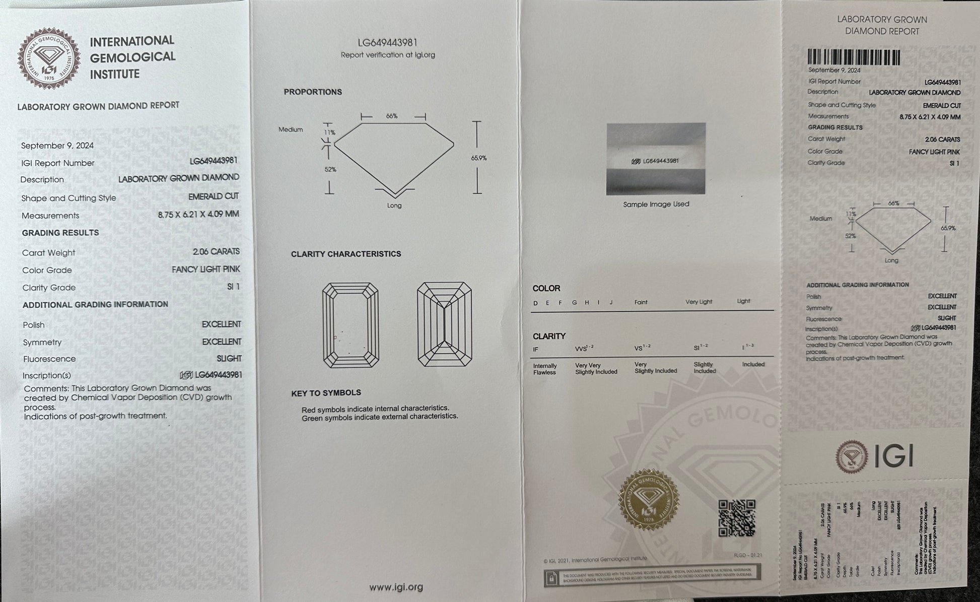 CVD Lab Grown Pink Color Diamonds Emerald Cut 0.5ct~5.0ct With IGI Certificate