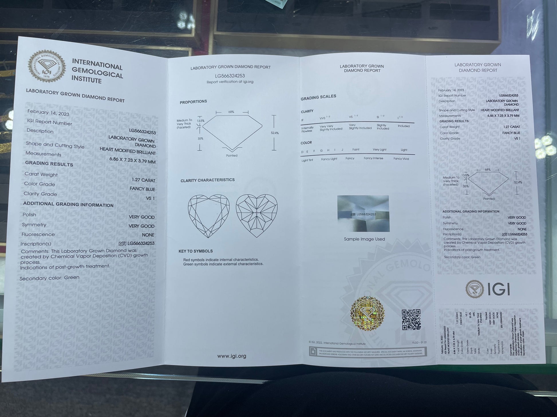 HPHT Lab Grown Blue Color Diamonds Heart Shape 0.5ct~5.0ct VVS/VS With IGI Certificate