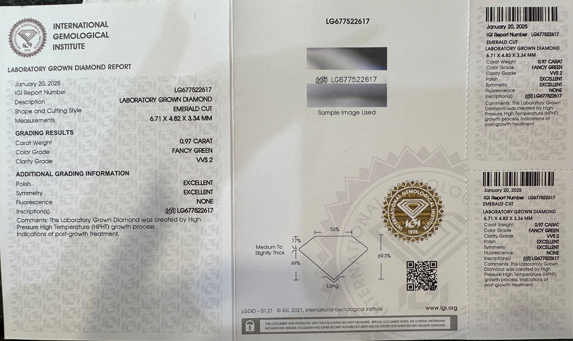 HPHT Lab Grown Green Color Diamonds Emerald Cut 0.5ct~5.0ct VVS/VS With IGI Certificate
