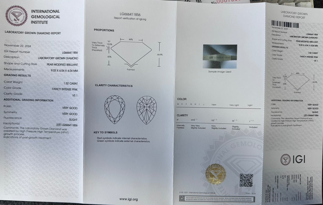 HPHT Lab Grown Pink Color Diamonds Briolette Shape 0.5ct~5.0ct VVS/VS With IGI Certificate