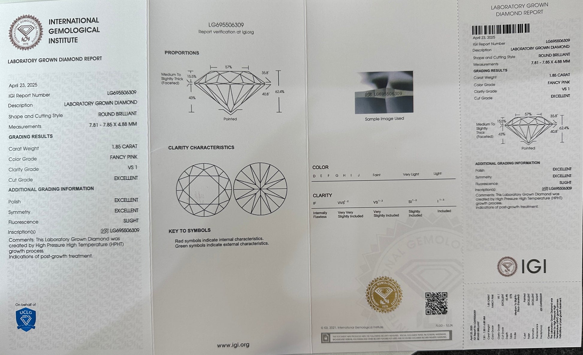 HPHT Lab Grown Pink Color Diamonds Round Shape 0.5ct~5.0ct VVS/VS With IGI Certificate