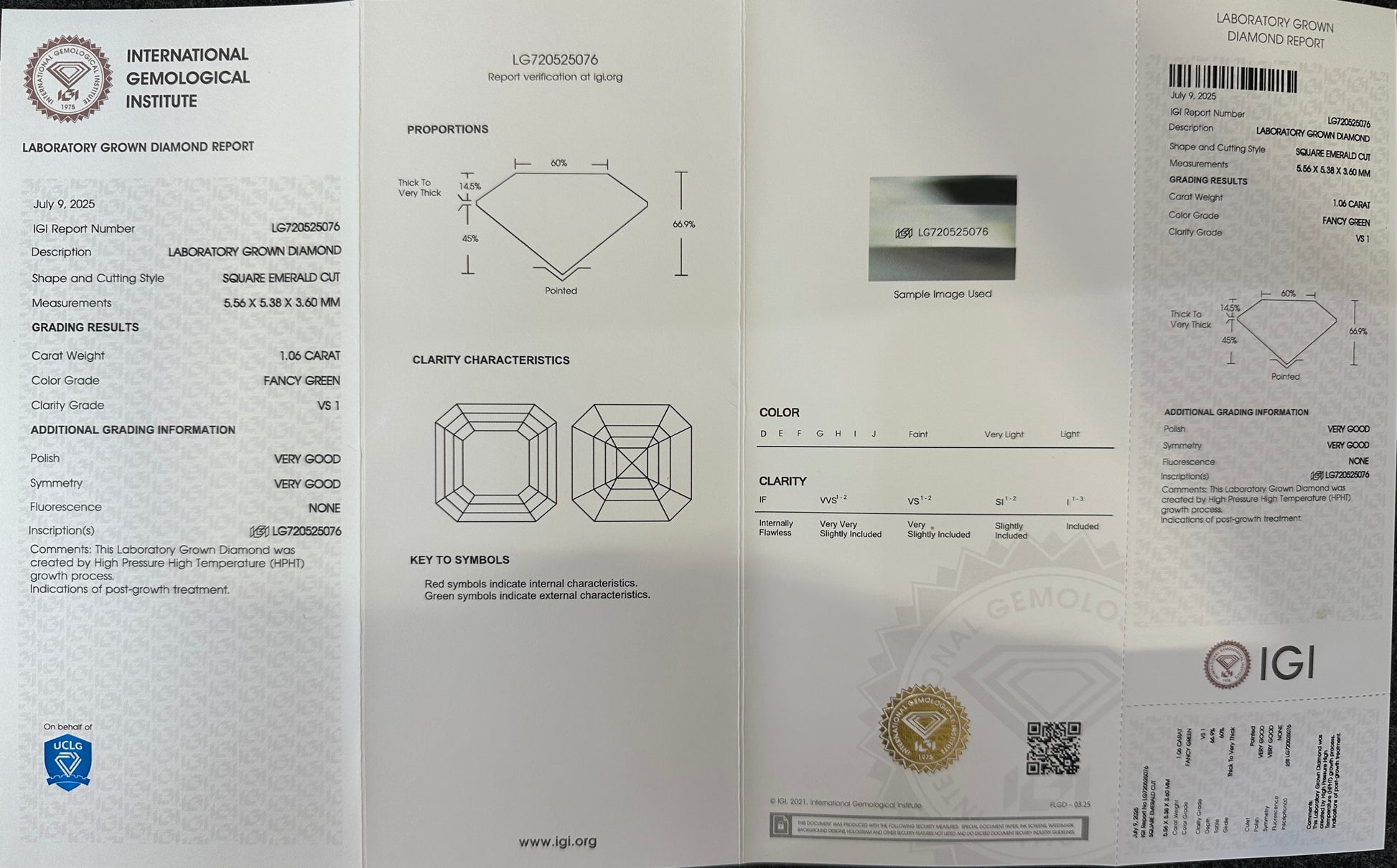 HPHT Lab Grown Green Color Diamonds ASSCHER Cut 0.5ct~5.0ct VVS/VS With IGI Certificate
