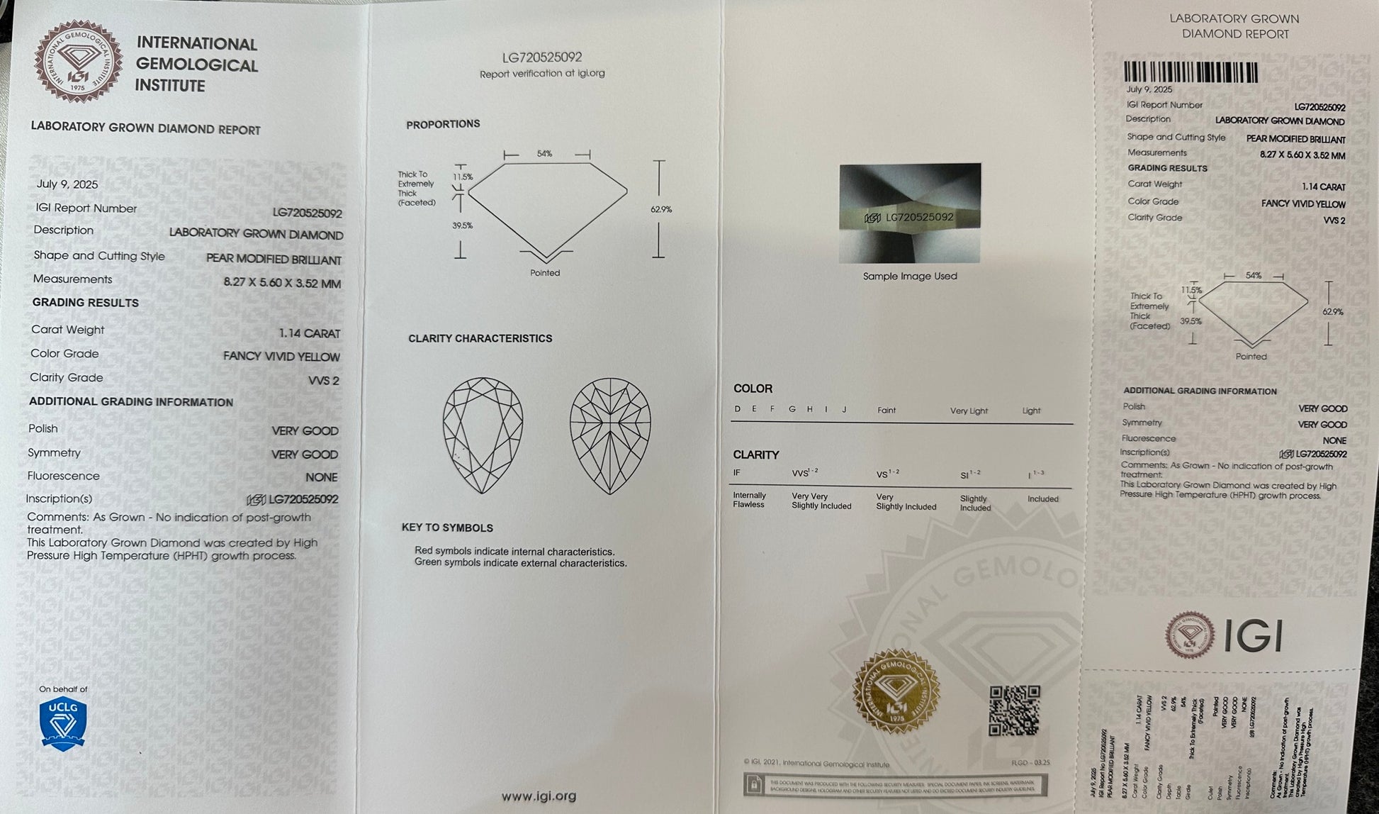 HPHT Lab Grown Yellow Color Diamonds Briolette Shape 0.5ct~5.0ct VVS/VS With IGI Certificate