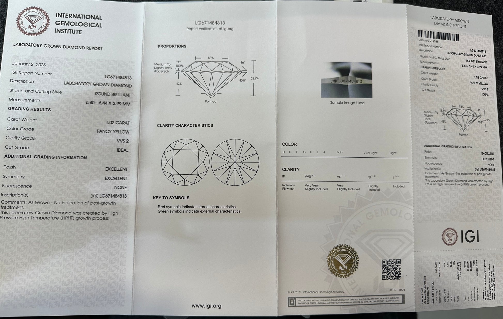 HPHT Lab Grown Yellow Color Diamonds Round Shape 0.5ct~5.0ct VVS/VS With IGI Certificate