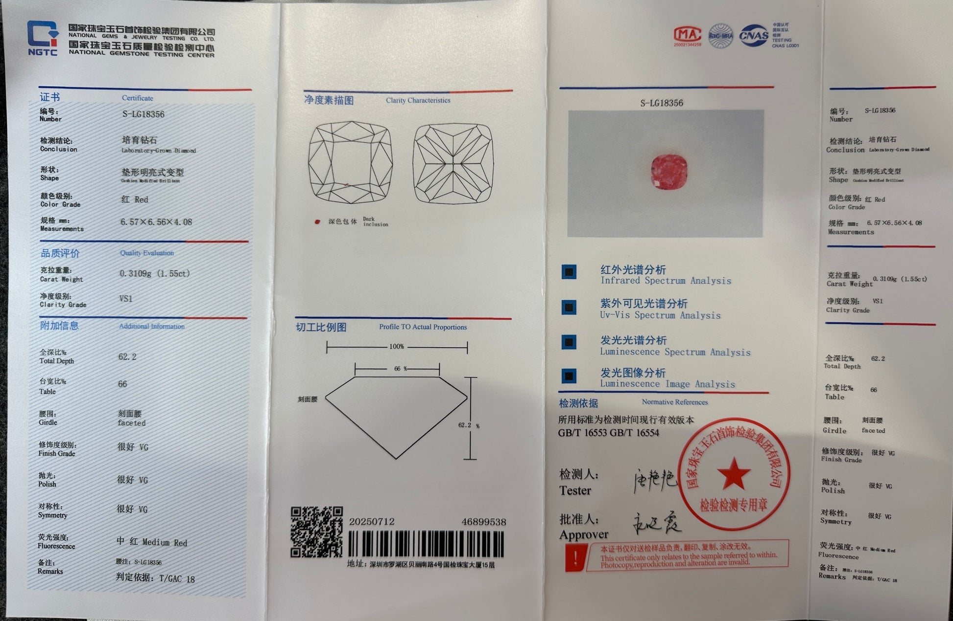 HPHT Lab Grown Red Color Diamonds Cushion Shape 0.5ct~5.0ct VVS/VS With Certificate