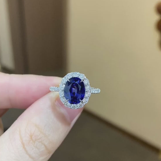 PT950 Platinum 2.47ct Round Lab Grown Blue Treasure Ring POSR1273