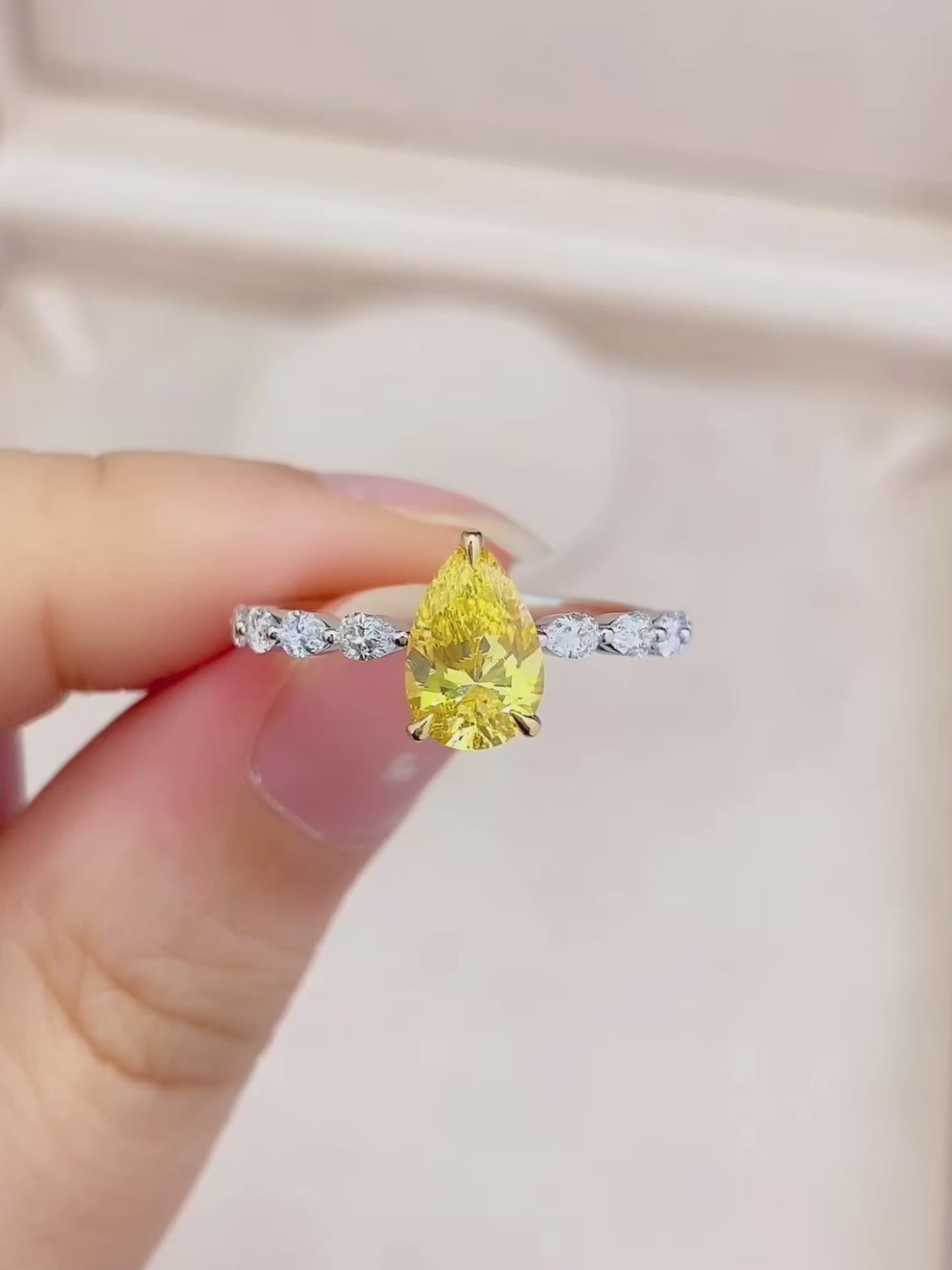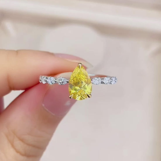 PT950 Platinum 1.11ct Water Droplet Shaped Lab Grown Yellow Diamond Ring PR1803