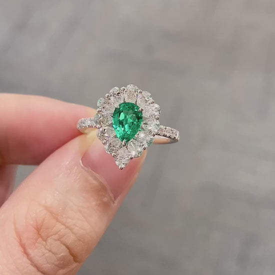 PT950 0.63ct Pear Shape Lab Grown Emerald Pear Shape Ring