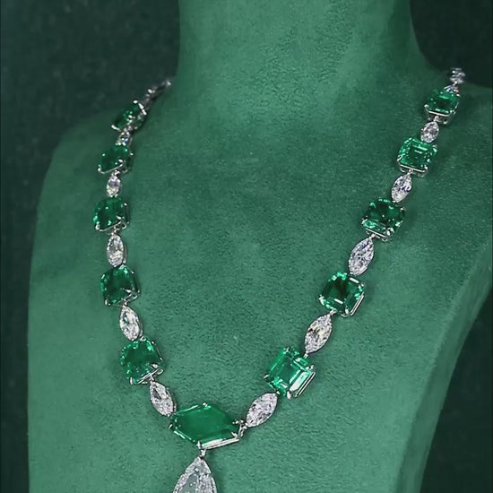 S925 Silver 61.68ct Lab Grown Emerald Necklace W
