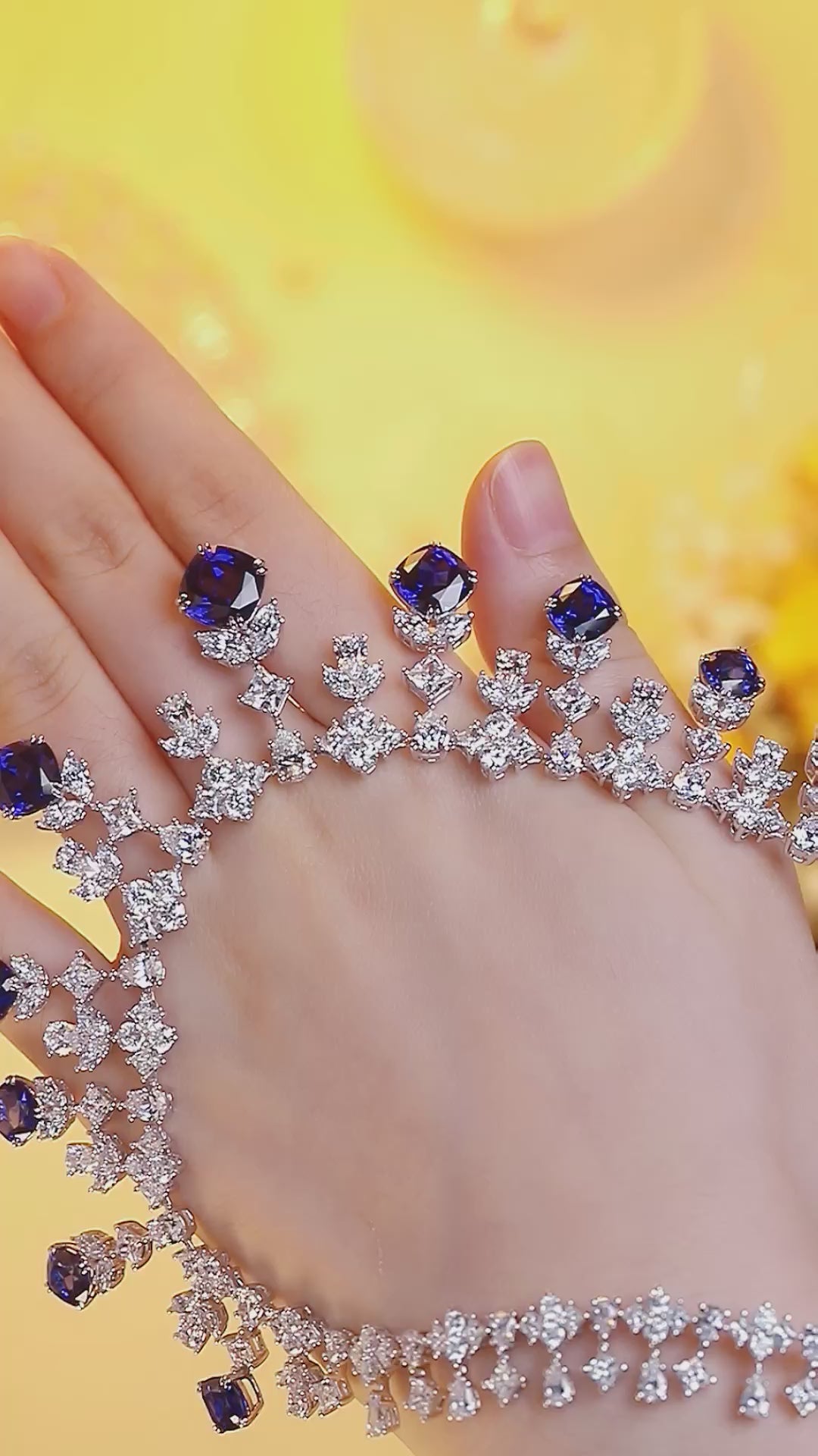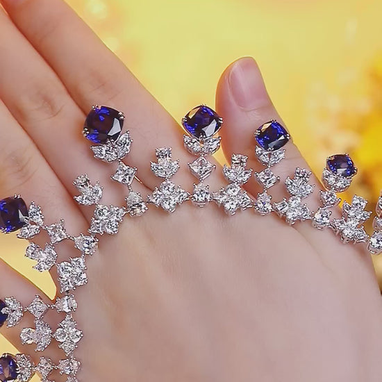 S925 Silver 32.04ct Blue Corundum Luxury Large Chain Set W