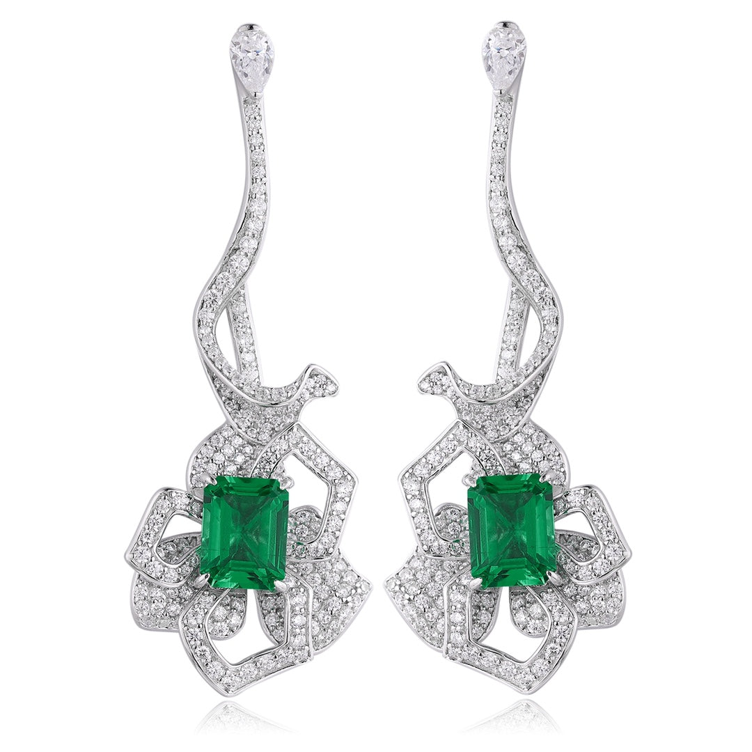 S925 Silver 4ct Lab Grown Emerald Earrings W JSEGE097Y
