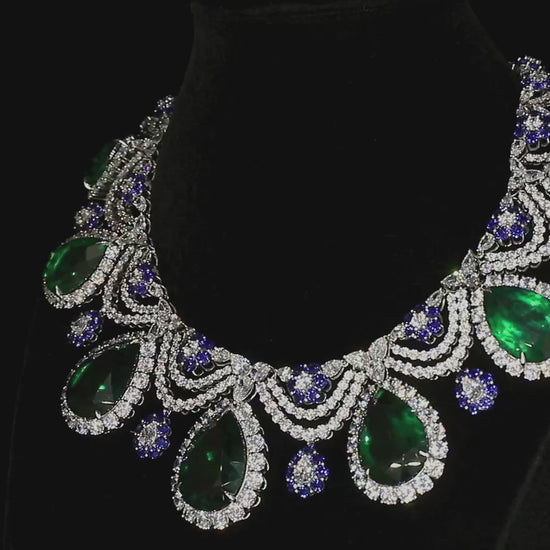 S925 Silver 192.42ct Droplet Shaped Lab Grown Emerald Necklace JSEGN625Y