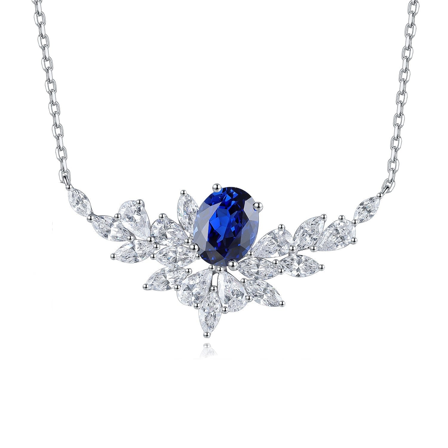 S925 Silver 2.4ct Lab Grown Blue Treasure Necklace A JSABN021Y