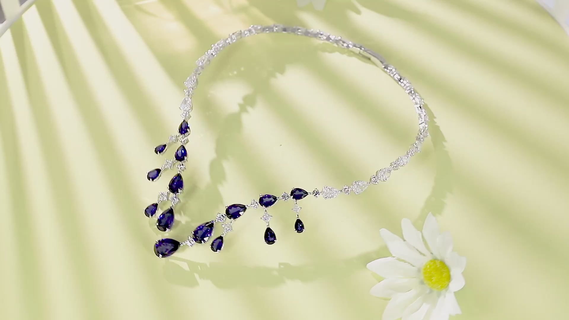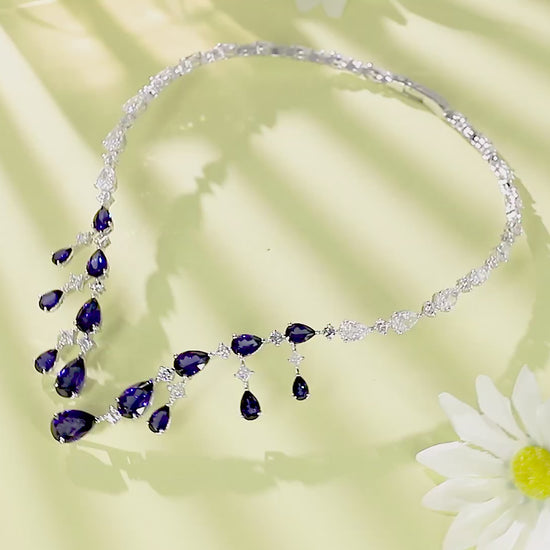 S925 Silver 34.21ct Pear Shaped Lab Grown Blue Treasure Collar A