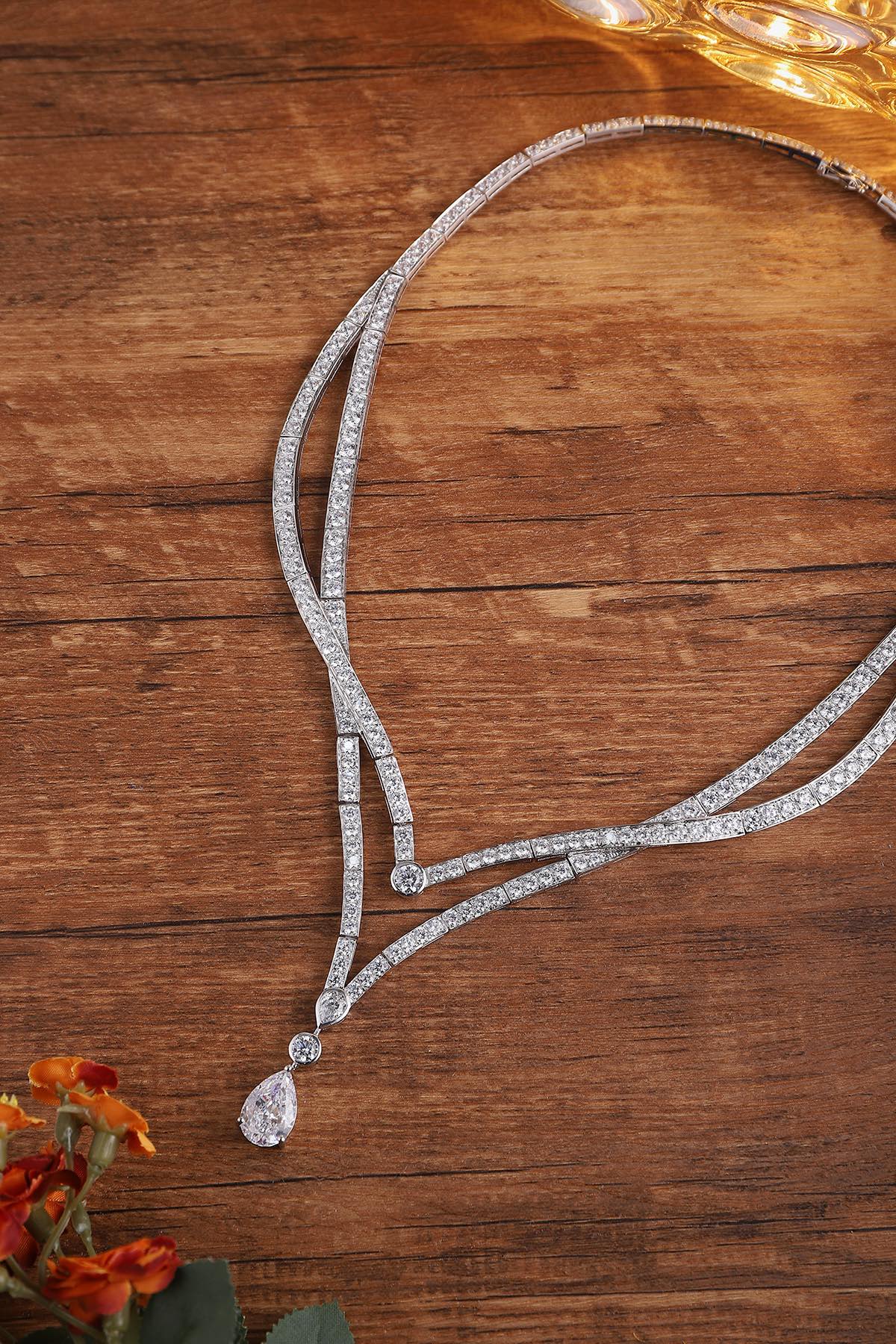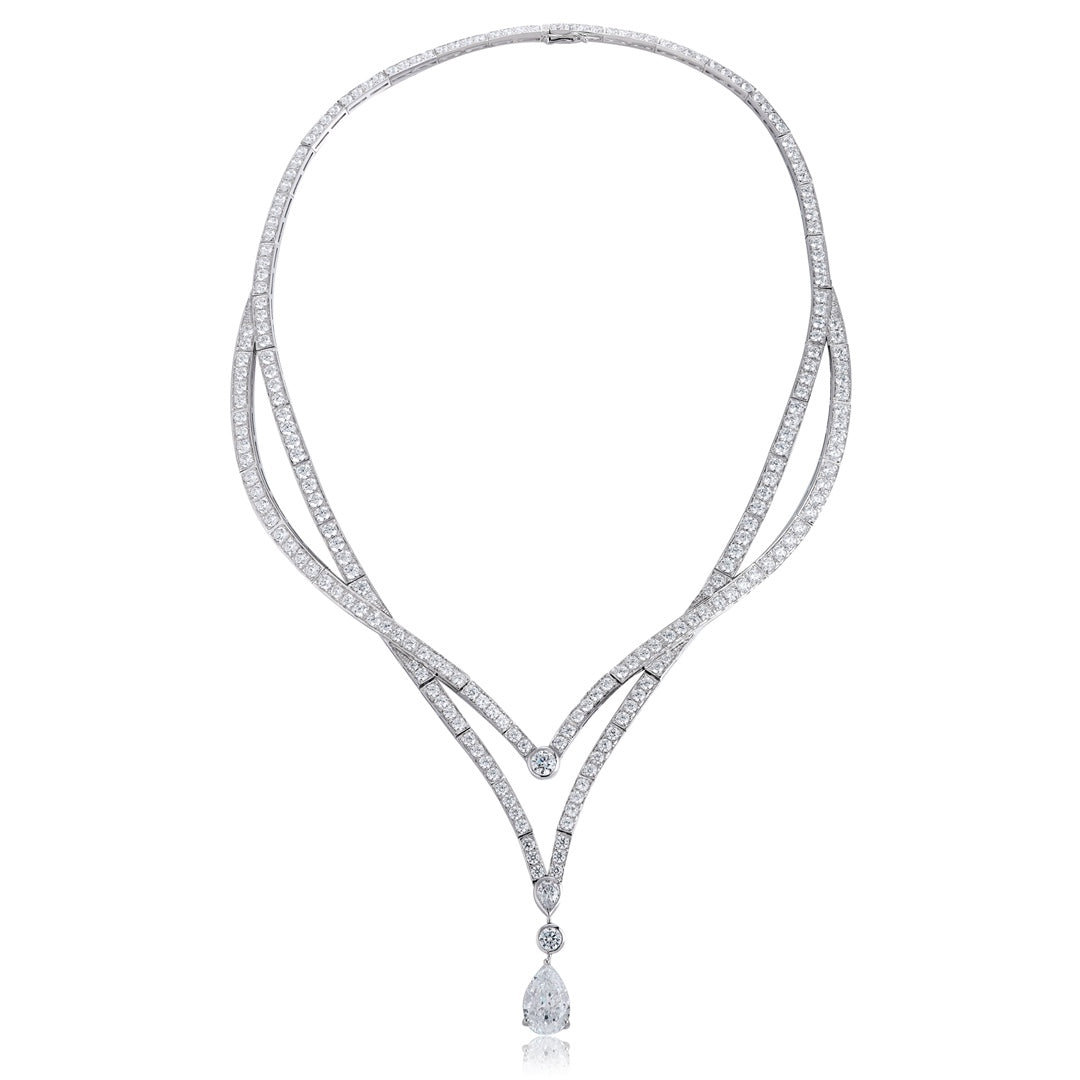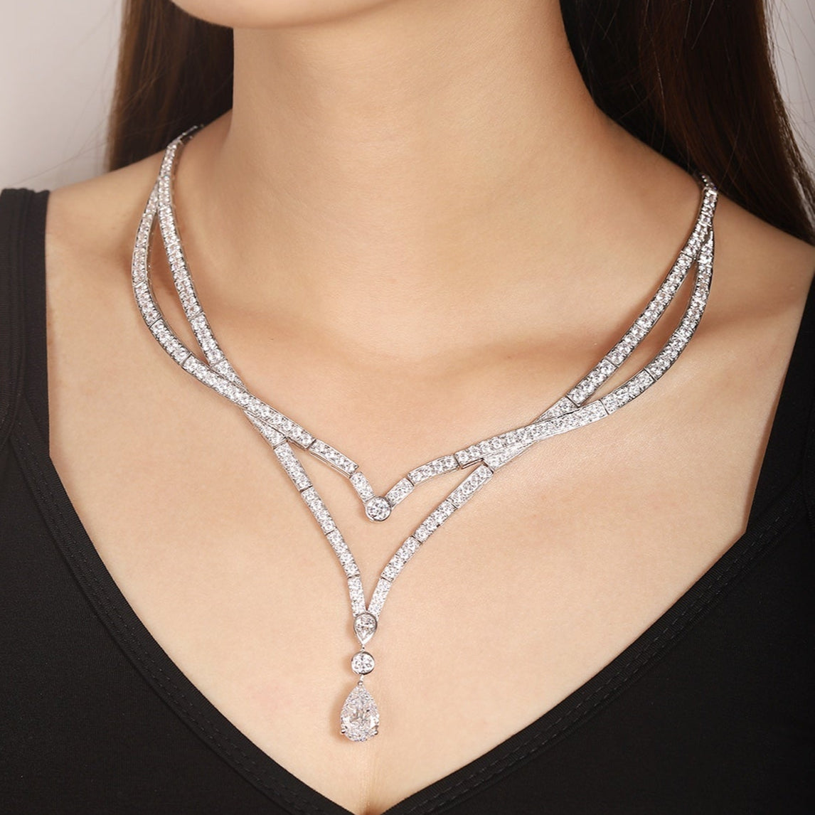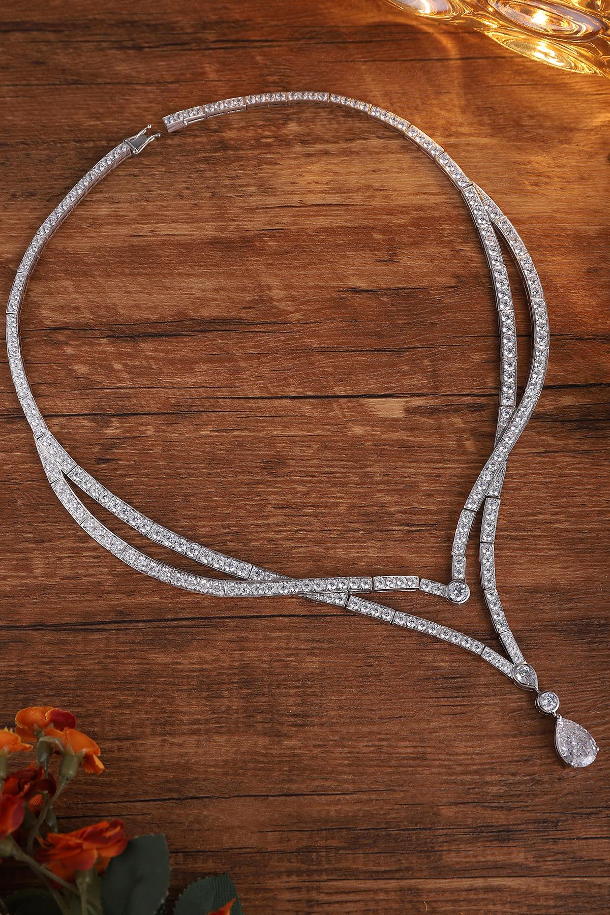 S925 Silver 12.9ct White Imitation Diamond Necklace A PN2158Y